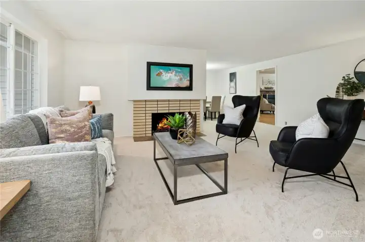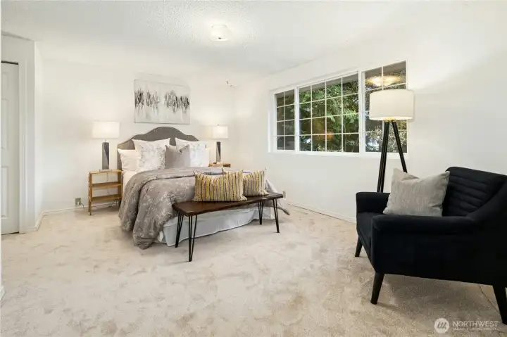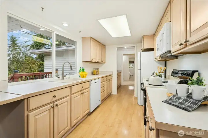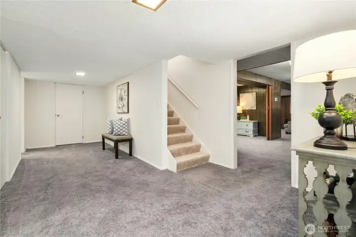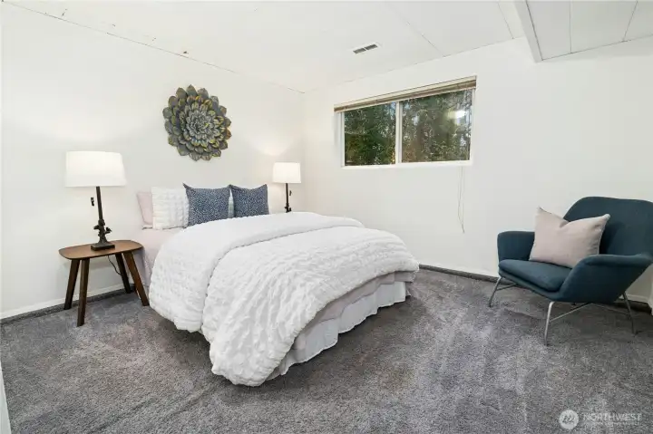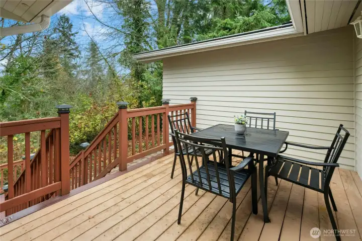 Welcome to a beautifully updated daylight rambler with remarkable space and flexibility. Newly updated with fresh paint and carpet, this home feels bright and inviting throughout. The upper level features four bedrooms, two baths, a large living room, and an open kitchen and eating area with peaceful views. Both floors connect to the expansive composite deck overlooking a private greenbelt—perfect for relaxing or entertaining. Downstairs adds two more bedrooms, a spacious laundry room, another bathroom, endless storage, and a fantastic oversized bonus room plus a flex room ideal for an office, gym, future kitchenette, or more. Just min to endless parks & trails, Microsoft, DT Bell & Red. Top-tier Bellevue ISD including Interlake HS.