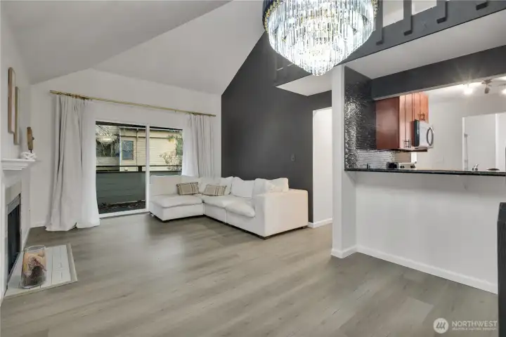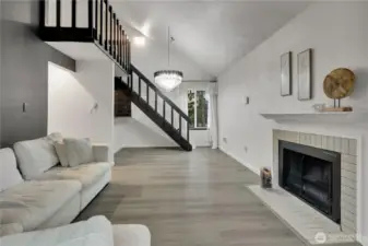 Upgraded unit in Chelsea Court! The large primary bedroom features a bonus space ideal for a home office or storage, tucked behind elegant double doors. A secondary upstairs bedroom offers abundant natural light, vaulted ceilings, and a versatile loft area perfect for working or relaxing. The inviting living room features a cozy fireplace and dining area accented by a beautiful chandelier. Enjoy resort-style community amenities, including a pool, hot tub, and sauna for year-round relaxation. Easy access to I-5, the Sounder line, and the transit terminal. Discover the vibrant neighborhood just steps away, featuring Steele Lake, a movie theater, restaurants, and local favorites like Trader Joe’s—everything you need minutes from your door.
