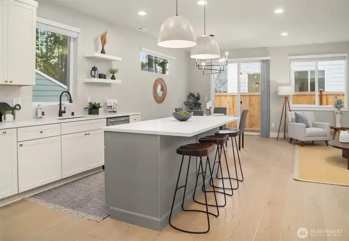 4.99% 30-yr CONV w/ builder’s $50K buydown via preferred lender. Brand new 4-bed + den PNW modern farmhouse in Edmonds’ Esperance built by Gleneagle Homes. Open-concept layout has modern style w/ striking gas fireplace framed by floor-to-ceiling stone surround. Chef’s kitchen boasts long quartz island for meal prep w/ seating. Shaker style cabinetry, stainless-steel appl + gas range & walk-in pantry. Slider opens to fully-fenced backyard + patio for effortless indoor-outdoor living. Huge Primary Suite w/ walk-in closet & spa-like 5-piece bath. All beds spacious. Family room/loft. Wide-plank LVP, EV-ready 2-car garage. Across from the park & walk to EWHS. Moments to the Edmonds Bowl, shops, Hwy 99 & I-5. 2-10 builder warranty included.
