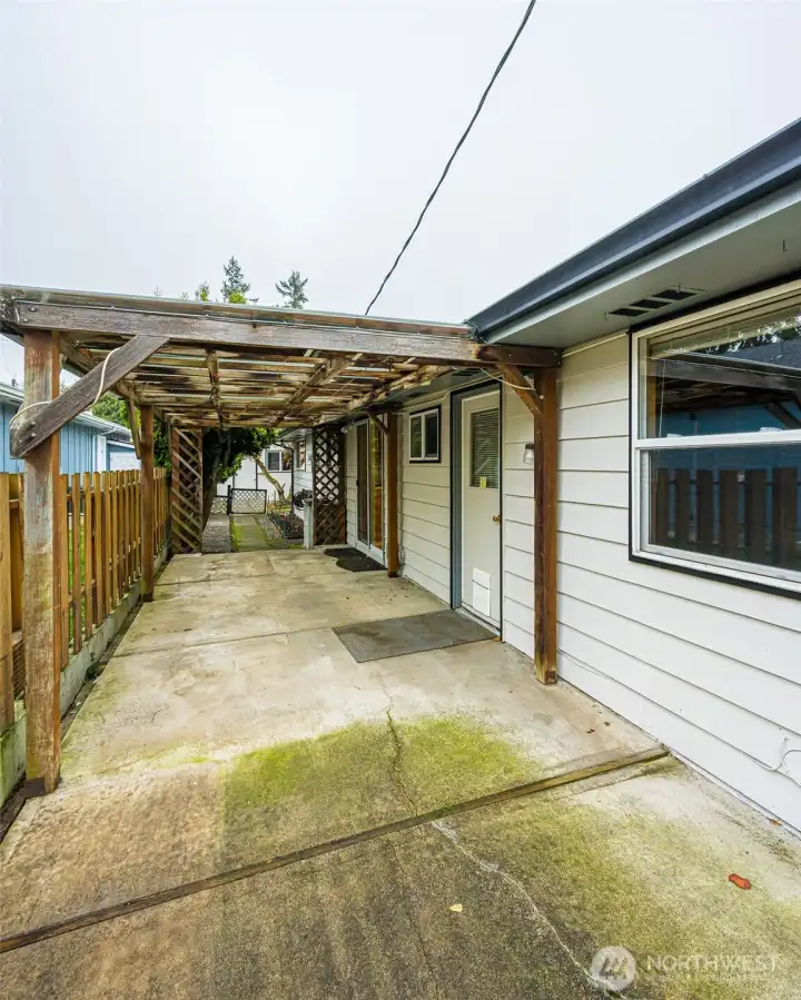 Discover this meticulously maintained home nestled in a tranquil neighborhood, where comfort and serenity harmoniously blend. It boasts new carpeting and fresh paint throughout, along with a charming patio off the kitchen. The property features two sheds, a fenced yard, and a covered patio, perfect for outdoor relaxation. Conveniently located near shopping, a hospital, and a school, this home also includes a garage that has been converted into additional space with built-in shelving. Home is impeccably clean and ready for one story living. New Roof! Shop in the back has electricity connected. Enjoy living on a quiet street in quaint Port Townsend.