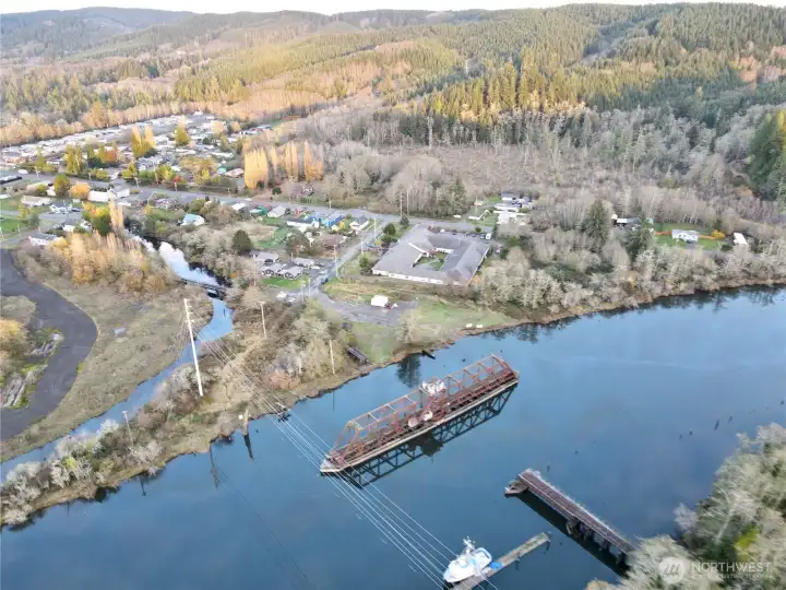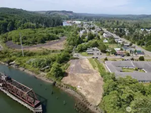 Rare riverfront opportunity on the Hoquiam River. A historic train trestle brings unique charm to the scenic shoreline. Located within city limits, the property has water and power connected, with sewer at the paved street, surveyed with markers and much of the lot is already paved. Nearly an acre with over 253 feet of riverfront, this versatile parcel offers endless options for your dreams: create a tiny-home village, set up RV living, plan short-term rentals, add a dock, or simply enjoy a private getaway for kayaking with friends. Abundant wildlife and great fishing make this an ideal spot for outdoor living and entertaining. Bring your ideas and plans—this property is ready for your vision to be the ultimate retreat spot!