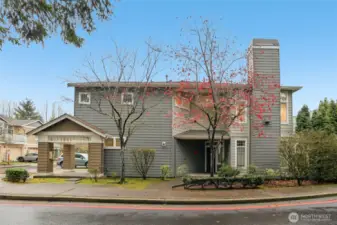 Stunning corner condo w/new carpet & fresh paint! Convenient driveway parking & spacious garage, EV charger + storage room. Discover a bright living room w/ high ceilings, complemented by a cozy gas fireplace, big windows & elegant appeal. The dining area flows into kitchen, boasting granite countertops & ample cabinetry. Den/2nd bdrm w/french doors off LR. Enjoy modern tiled guest bthrm w/ walk-in shower. Retreat to the primary suite, complete with an ensuite bathroom & generous walk-in closet. Full W/D. Outside, the north-facing deck offers a serene space to unwind. The boutique condo community includes guest parking w/ water, sewer, & garbage are covered in the dues. Fabulous location for shops, eateries, medical & close to hwys.