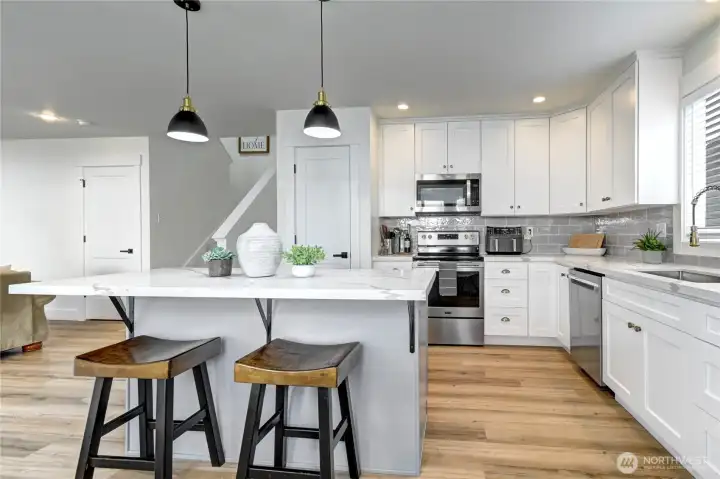 Updated 4 Bedroom Home in the Perfect Mill Creek Neighborhood! New Kitchen, Bathrooms, Paint, Flooring, Trim and Carpet! Covered Porch welcomes you inside to Vaulted Ceilings, a Fancy Gas Fireplace and Large Sun Filled Living & Dining rooms. Kitchen is Fully Updated with Stainless Appliances, Large Sink, Spacious Pantry and Functional Island with Cabinets and Seating. Large Family Room & another Beautiful Gas Fireplace for Lounging or Game Night. Upstairs Bedrooms are Large and Separated for Privacy. Primary Suite offers 5 Piece Bath and Large Walk in Closet. Kitchen and Family Room look out to the Perfect Size Yard to Enjoy, Play and Entertain without Hours of Lawn Care. EV Charger, Great Schools and an Unbeatable Mill Creek Location!