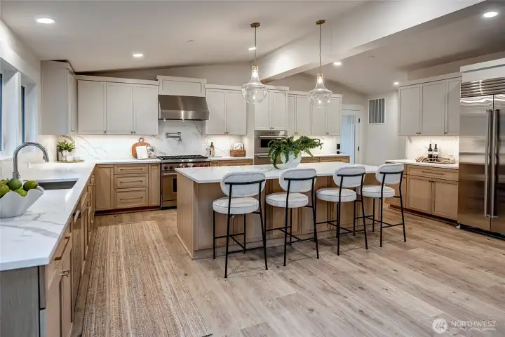 Rare single-level living, better than new custom luxury in a perfect Mid-Island location. Minutes to both N & S end plus an easy walk to Island Park Elem, parks & trails. Fully reimagined w/timeless modern design, soaring vaulted ceilings & expansive windows allowing natural light to pour in. Open great rm lives large w/magazine inspired fireplace accent wall. Chef’s kit is a showpiece w/slab quartz, Sub-Zero, Wolf, XL island, custom white oak cabs, designer lighting & ideally located prep pantry. Luxe primary is a private retreat w/Nordstrom-lover’s closet and 5? spa bath. 3 add’l BRs (1 en suite) plus den. Impeccable finishes, wide-plank wood floors, curated fixtures. Level fenced yard, perfect scale, low maint. A flawless MI lifestyle.