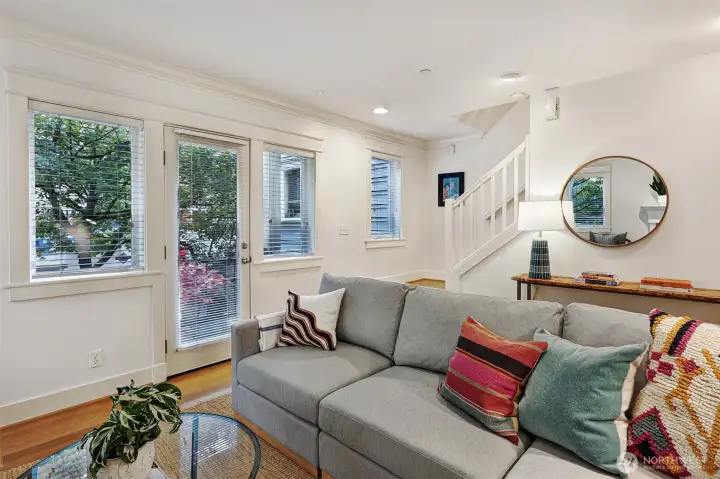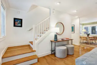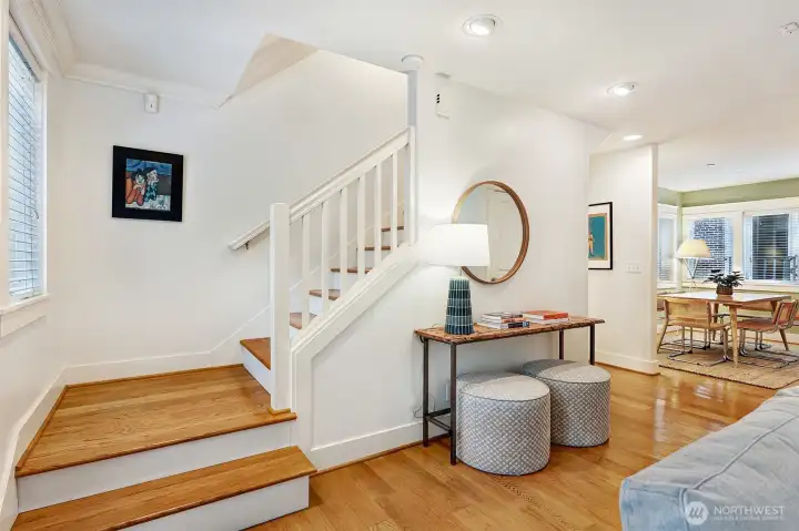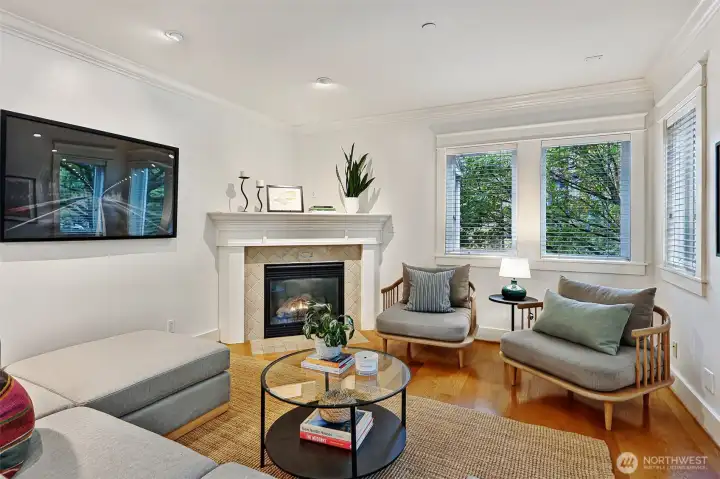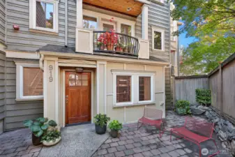 Immaculate 3-story Craftsman-style townhome with peek-a-boo Lake Union views, ideally situated between vibrant South Lake Union and Capitol Hill’s historic Harvard/Belmont District. Built in 2003, this home provides gracious living. Features include a private 2-car garage w/ extra storage, charming courtyard, chef’s kitchen with WOLF range and stainless appliances, beautiful hardwood floors, gas fireplace and in-floor radiant heat. The top floor offers two bedrooms including a spacious primary suite with lofted library/office, custom closets and spa-like bath. The entry level provides a third bedroom, currently used as an office with custom bookshelves and built-in desk. Close to top restaurants, cafes and parks and minutes to downtown.