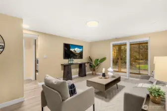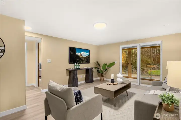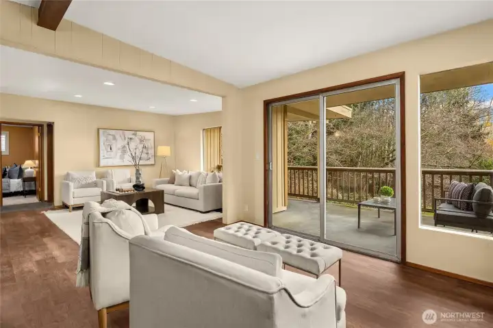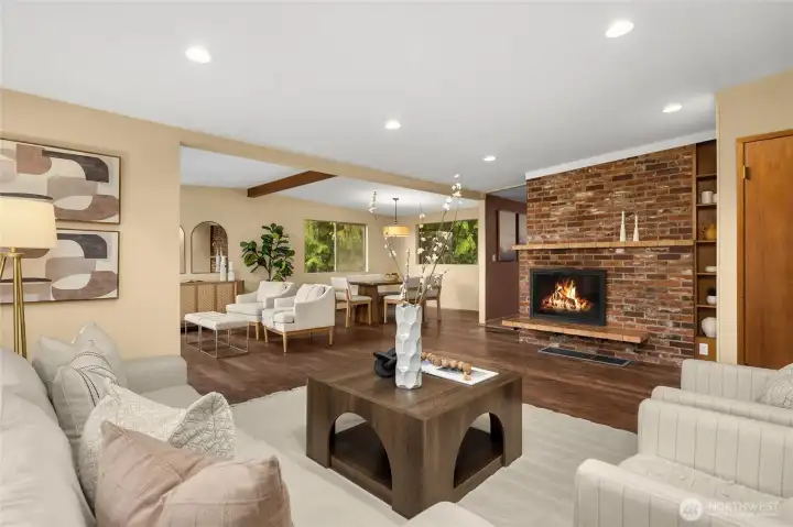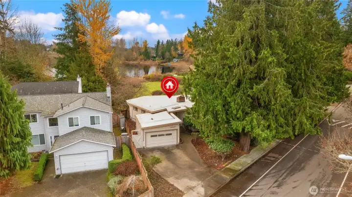 Incredible opportunity to own a waterfront property in Rose Hill on Forbes Lake. This .40-acre level lot offers 30 feet of lakefront and exceptional privacy. Just minutes from downtown Kirkland and top-rated Lake Washington schools. The 2,110 sq. ft. daylight rambler features 4 bedrooms, 1.75 baths, a lower-level office, sunroom, two fireplaces, and parking for three cars between the two garages. The second driveway provides additional parking perfect for a boat or RV. Host large gatherings on the back viewing beck or the flat back yard all surround by the picturesque views.