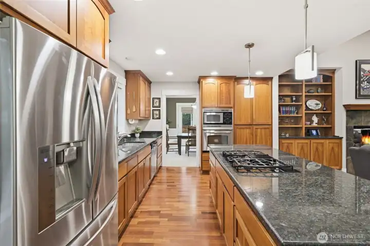 Elevated Living with Panoramic Mountain & Territorial Views. Step into a world of breathtaking design within this stunning 4-bedroom sanctuary. Spanning nearly 3,000 square feet, this home is an architectural masterpiece designed to maximize light space with all the walls of large view windows. Dramatic entry with vaulted ceilings accent the open flow floor plan. Double-sided gas fireplace. You will love the gourmet chef's kitchen with island & gas cook top range + rich granite counter tops. Cherry hard wood floors. Lower level optional en-suite set up is a perfect 2nd primary bedroom or MIL. Experience the grandeur of the picturesque fenced backyard with added covered patio. Tankless hot water. Central AC. Oversized 3 car garage.