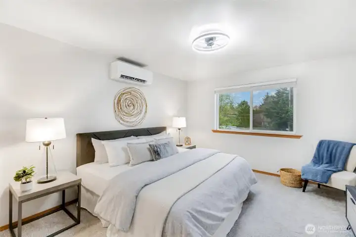 Nestled in a quiet cul-de-sac with no HOA, this updated 1,800 sq. ft. two-story home features 4 bedrooms, 2.5 baths, a bright remodeled kitchen with eating space, and all new appliances. Enjoy mini-split AC/heat in every room, fresh paint, luxury laminate floors, and a new roof with solar panels. Upstairs offers all four bedrooms, a utility room, and a spacious primary suite with a walk-in closet and a 4-piece bath. The backyard includes a new concrete patio and a bonus detached office. Unlike most duplexes, this home shares no living-space walls. Welcome home.
