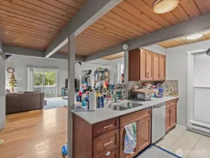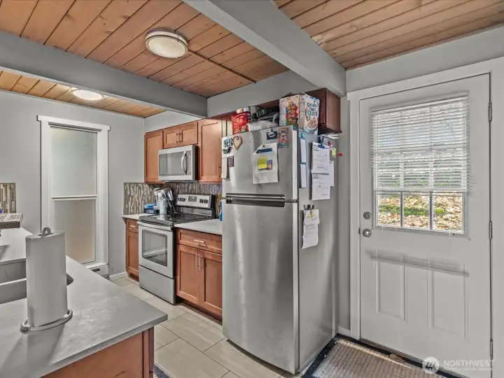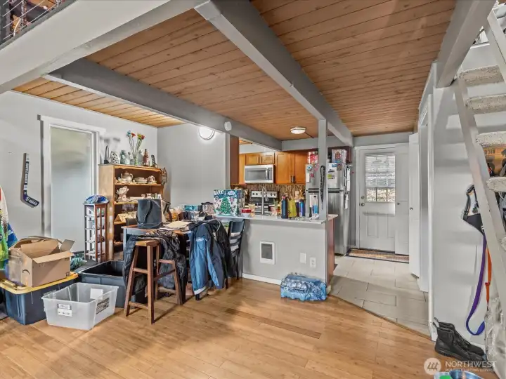 Beautifully maintained tri-level condo in a prime location! This 3-bed home features soaring tongue-and-groove ceilings, exposed beams, and an airy open layout. The updated kitchen boasts an oversized island and new appliances! Bonus room upstairs + extra storage off the lower bath. 2 bathrooms low Hoa dues!Private, fully fenced outdoor space with covered deck and patio—no lawn maintenance required! Attached 1-car garage plus two exterior spots. Minutes to schools, shopping, Chambers Bay, and I-5. Make this your next cozy home or fantastic investment property!