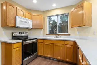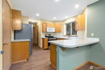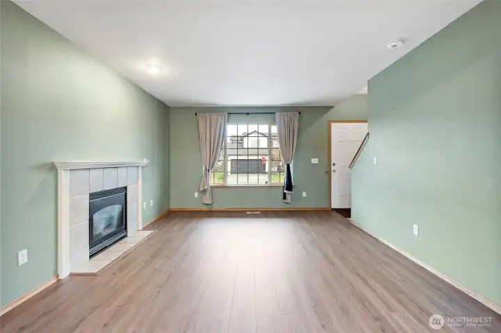 Comfortable two-story home ready for your personal touches, on a private cul-de-sac. The welcoming covered porch opens to the open living room with a gas fireplace. The designated dining room opens to the kitchen and covered patio, perfect for entertaining. With easy access to the garage, laundry room, and half bath, the kitchen is the central hub of the home. Upstairs, two additional bedrooms and a shared bathroom, plus a private primary bedroom with a full bathroom and a walk-in closet. Close to groceries, dining, and recreation.