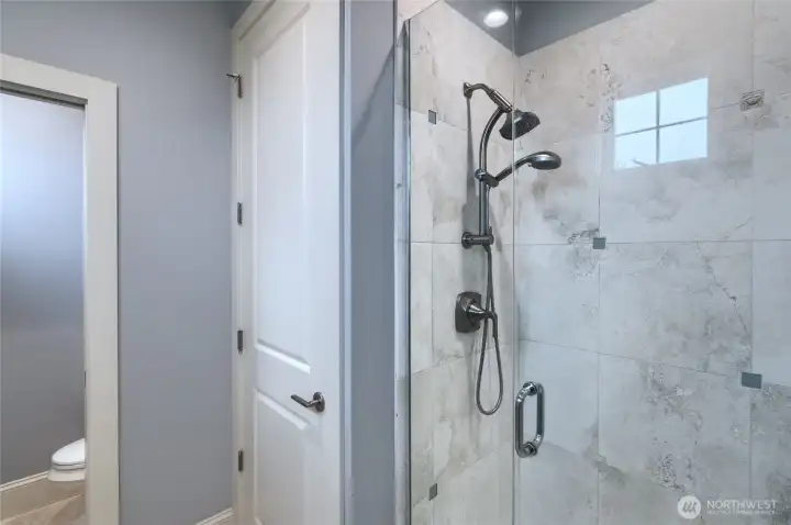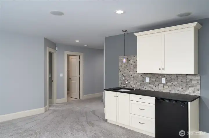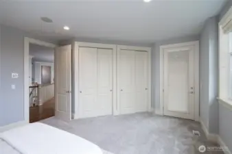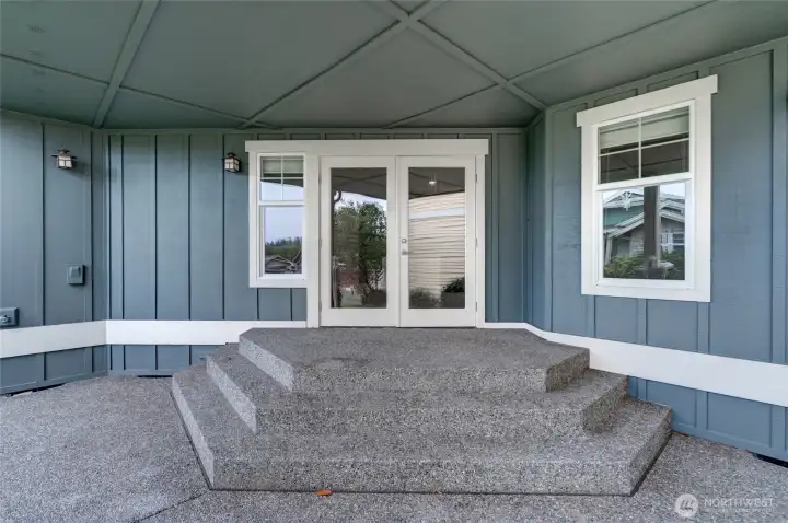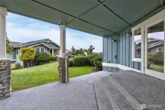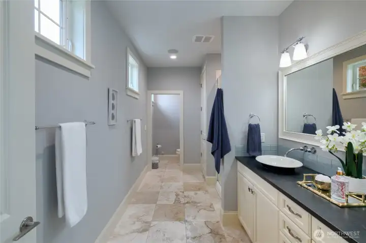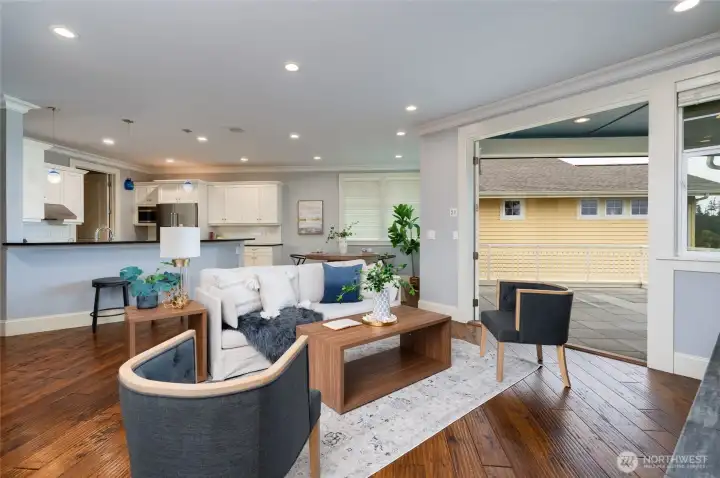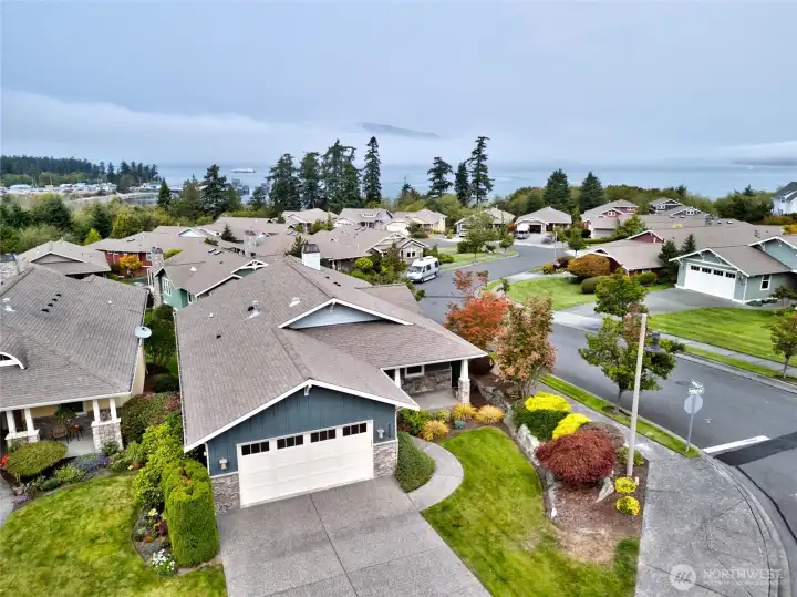Quality Ron Paulk built Home, a beautifully home w/ solid wood doors, detailed ceiling and baseboard trim. Main level living offers Primary & second bed rm and bonus office/flex rm with French doors, all main level. The kitchen with long quartz bar, living rm stone fireplace, and seamless flow to French doors view deck ideal for entertaining. Primary suite showcases sweeping channel views of San Juan Islands, plus spa like bath and lg walk-in closet. Lower level/ w guest suite, and potential cool/wine room, and patio with hot tub wiring. Whole-home with built-in speaker in every room including sound system completes this retreat. Enjoy care free maintenance with landscaping, exterior painting and roof replacement included in HOA fee.