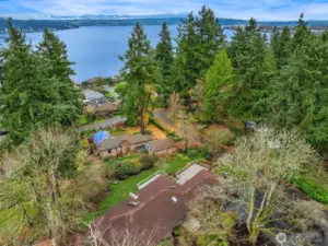 Mid-century view home + ADU on double lot just one block from Lake WA. Extremely well-maintained 3,630 sq ft home on private 14,400 sq ft corner lot with detached 2 car garage & lake views from nearly every room. Main floor has 4 beds, 2 updated bathrooms, spacious living room, remodeled kitchen & access to expansive multi-level deck with hot tub. Daylight basement has high ceilings, separate entry, 2nd kitchen, 3 beds, additional bathroom, 2nd W/D, large living room with fireplace & custom wine cellar. Pride of ownership evident throughout & just the 2nd time this property has been on the market since it was built in 1951. Unique opportunity with development potential for as many as 6 lake view homes (buyer to verify). Don't miss this one!