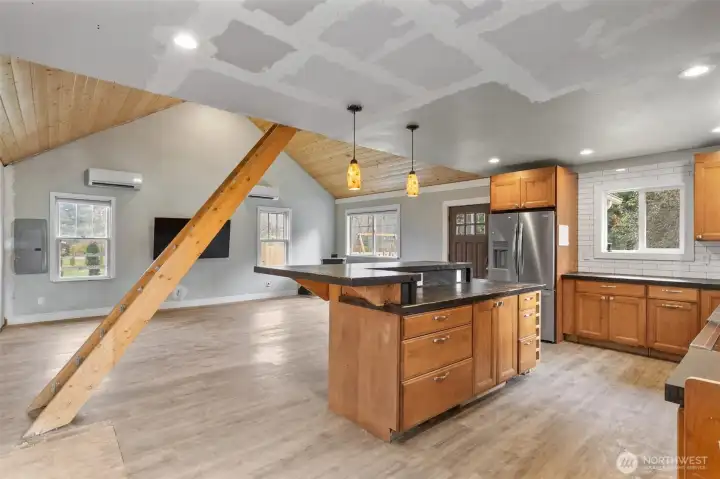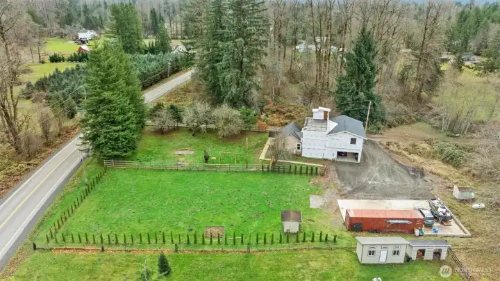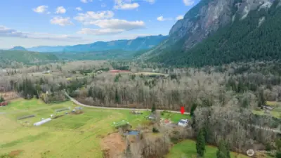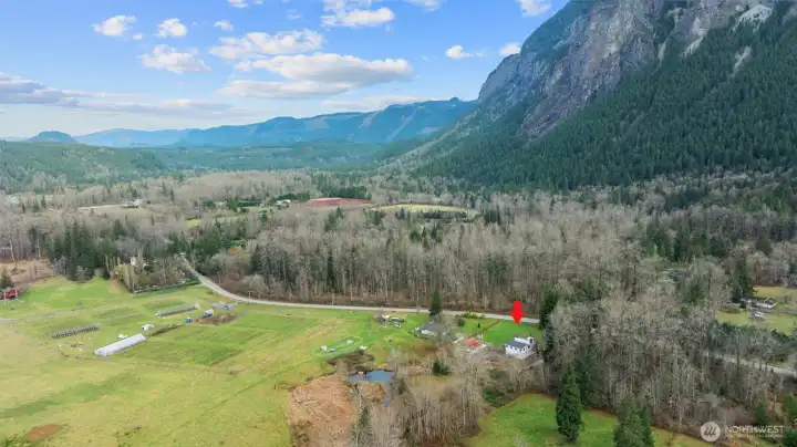 Incredible opportunity just outside North Bend with unobstructed Mt. Si views. This partially finished custom home sits on a full acre and is ready for your vision. Framing is complete with partial electrical, and the lower level is livable while you finish the upstairs. The planned layout includes 3 bedrooms and laundry up, with a main floor featuring an open kitchen, living room, mudroom, office, and bathroom with room for a sauna. A third-floor rooftop deck offers stunning mountain scenery. A drive-through garage and large concrete slab for a future shop add even more potential. No HOA and minutes to town and I-90.