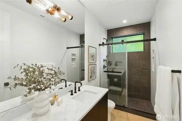 Where nature meets luxury-a retreat designed for those who lead. This is not just a house-it’s a sanctuary, you'll be the first living here. A rare blend of sleek modern design, panoramic views, and the peace of nature-all just minutes from Bellevue. Wake up to quiet mornings above the city with open-concept main floor chef's kitchen with Viking appliances and quartz waterfall island opening a spacious dining area—ideal for entertaining. UL includes 3 bedrooms, 2 full baths, a lounge area, and a luxurious primary suite with a spa-inspired bath and walk-in closet. LL is an entertainer’s dream with an expansive rec room, wet bar, wine cellar, guest bedroom, and full bath. Smart home tech, EV charger, dual-zone climate. Issaquah School Disctr.