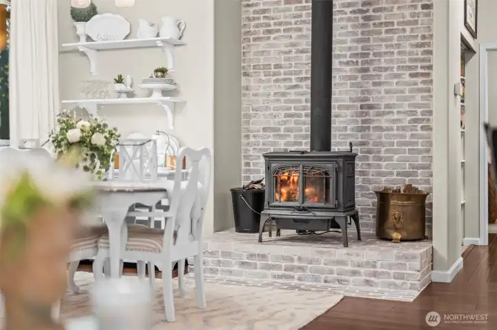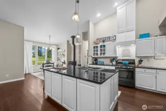 Beautifully updated & meticulously maintained, this single-story home on just under 2 acres has it all! Fully fenced w/ detached 36 by 24 ft shop + 3/4 bath, wood-burning stove & W/D hookups. An additional 11'x24' covered slab + RV parking pad w/full hookups + designated garden area. Inside you will find stunning updates including the kitchen offering white cabinetry, quartz counters & 5 burner gas range. Open concept living to dining room w/ access to the backyard & covered patio. Vaulted ceilings in great room w/ custom cabinetry & cozy fireplace. 9ft ceilings & engineered hardwood throughout. Versatile den/flex room & second bedroom & full bath. Primary suite includes 5 pc bath w/ soaking tub & walk-in closet. No HOA with room to roam!