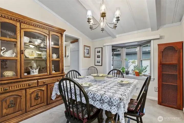 Discover comfortable living in this 1,147 sq ft double-wide manufactured home, built in 1982. The bright, functional floor plan offers 3 bedrooms and 2 full bathrooms. The interior features a spacious living area with vaulted ceilings and a defined, bright dining area complete with a lovely bay window. The kitchen is easily accessible and ready for your personal touch. Exterior features are a major highlight: the home sits on a corner lot and boasts an expansive, fully covered porch perfect for outside relaxation. Storage is plentiful with both outside tool storage and an additional storage shed in the backyard. This home is ideally situated right next to the community clubhouse, providing easy access to all park amenities.