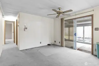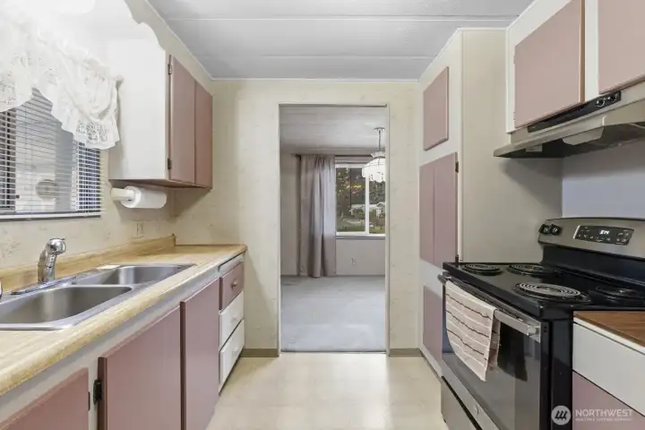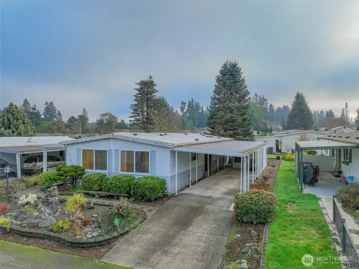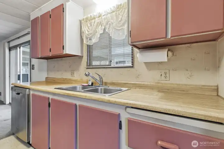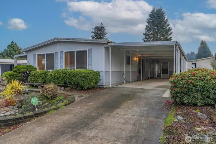 Amazing Deal Sold AS IS! Welcome to Alonda Villa – a charming 55+ community! This 2-bedroom, 1.75-bathrooms, 1248+/- sq ft home offers comfort, space, and potential. Floor plan features a spacious living/dining area perfect for entertaining. Kitchen with eating bar opens to family room with wood stove, perfect for winter evenings. Oversized primary bedroom features walk in closet & ¾ bathroom. Enclosed patio off the living room offers year-round enjoyment. Convenient storage area in the carport is perfect for hobbies or extra space. Economic forced-air furnace with heat pump ensures year-round comfort. Bring your personal touches and make this home your own. All appliances stay. Close to hospital, shopping & restaurants.