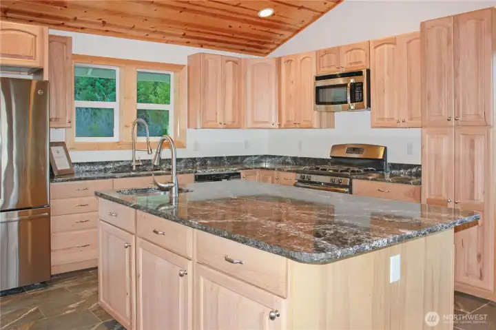 Northwest cabin on 9 wooded acres across 3 parcels with mountain and valley views. Built in 2015 with knotty pine finishes, granite counters, stainless appliances, and beautiful stained-glass front doors, the bright great room opens to a 385 sq ft covered deck and a 364 sq ft uncovered deck. Main-floor primary suite with walk-in closet, deck access, and bath with tiled shower and double sinks. Fully finished walkout basement with 2 bedrooms, full bath, and laundry. Trails, nearby streams, groomed snowmobile and dirt bike routes, RV parking with hookups, heated cabin with 3/4 bath, insulated 30x40 shop, and a third parcel with separate septic, power, and water ready for another home minutes from Cle Elum, Yakima River, and National Forest.
