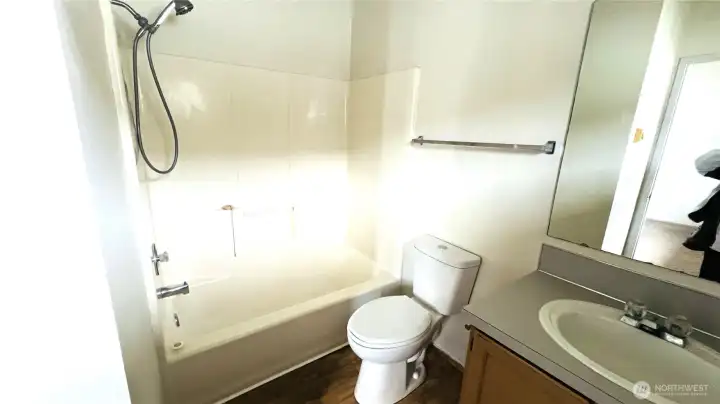 Move-in ready 2-bed, 2.5-bath condo in Lakepointe Village Townhomes Community! Perfect starter home or investment property. Each bedroom features its own private bath, including a spacious primary suite with vaulted ceilings, double vanity, and abundant natural light. The main level offers an open-concept layout with a gas fireplace, tiled kitchen, dining area, and access to a semi-private enclosed deck. Extra-deep 2-car garage includes storage space and laundry hookups. HOA covers water, sewer, garbage, and common area maintenance. Prime Lacey location across from a city park and close to schools, shopping, dining, golf, and JBLM!