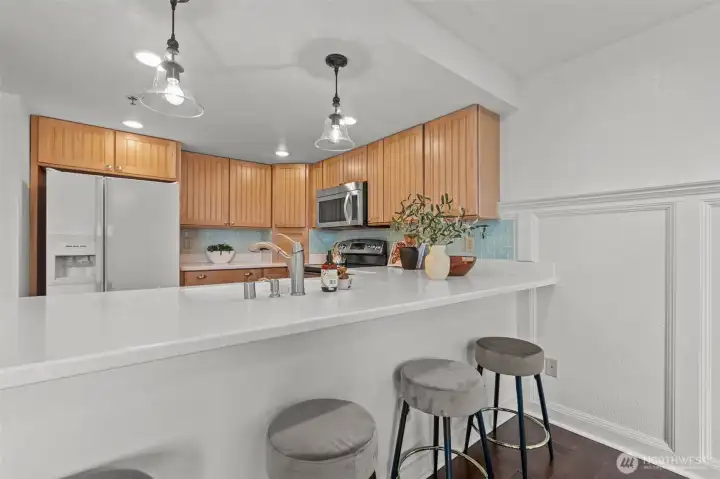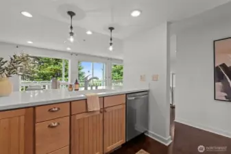 Amazing opportunity to live in a serene and secluded location with a stunning view of the sound and olympics. The living room opens to a spacious deck, perfect for entertaining on lazy afternoons. Updated kitchen, with granite countertops, stainless steel appliances, the primary suite includes an ensuite bath with a walk-in shower, both bedrooms feature walk-in closets. This condo provides luxury & convenience - storage both inside & in the secure underground garage. Walkable to Redondo Beach, and easy access to retail, parks, and major freeways, this home combines peaceful living with easy access to everything you need.