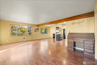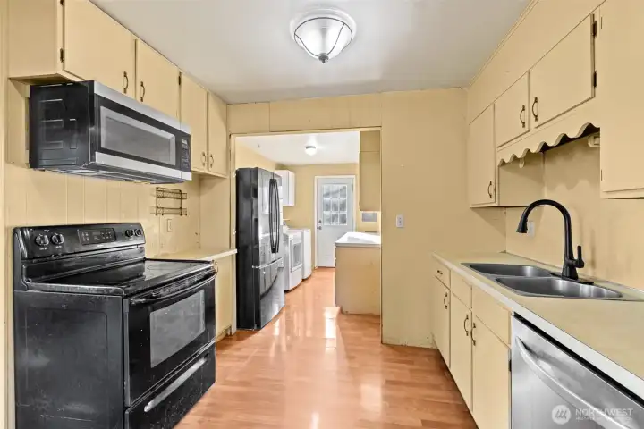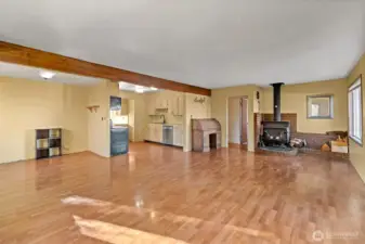 Welcome to this charming single-story home situated in a friendly high school area neighborhood. This four-bedroom residence features an inviting open floor plan that leads you into a cozy living room warmed by a freestanding woodstove. The wide galley kitchen connects to the dining area and laundry room, creating a functional layout. A versatile bonus room offers options for an office, craft space, or exercise area. The primary suite includes a walk-in closet and a three-quarter bath. Enjoy the privacy of a flat, fenced yard with a concrete patio, ideal for gatherings. With a large detached garage and two storage rooms, this home offers great potential for those looking to create their own space in a classic small-town setting.