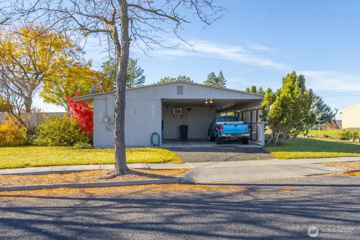 Charming 1,407 sq ft home on nearly half an acre, fully fenced with a approximately ¼-acre separately fenced backyard featuring mature landscaping with plenty of room for all your back yard dreams. Enjoy the 2-car carport parking and a 10'×20' detached garage 'shop'. Pride of ownership shows thruout this home. You are welcomed by a paved walkway leading to the front door, and a spacious covered patio in the fenced backyard. Exterior paint and fencing were updated just 5 years ago. A rare blend of space, character, and outdoor fun—this property is ready to enjoy!