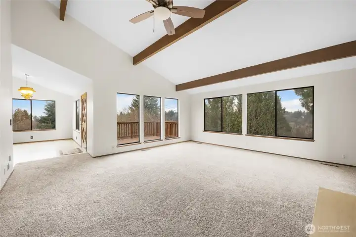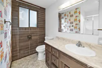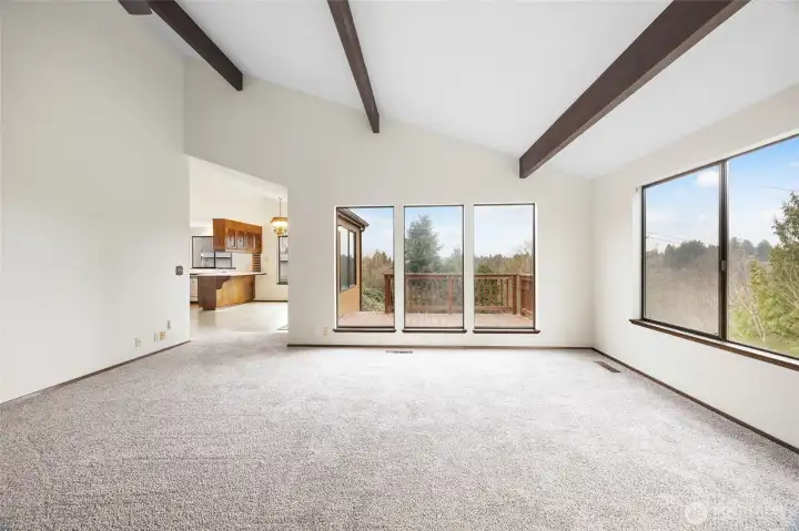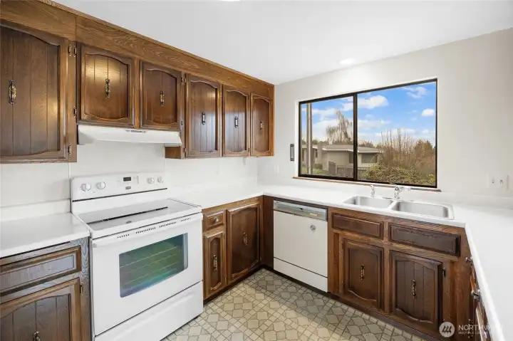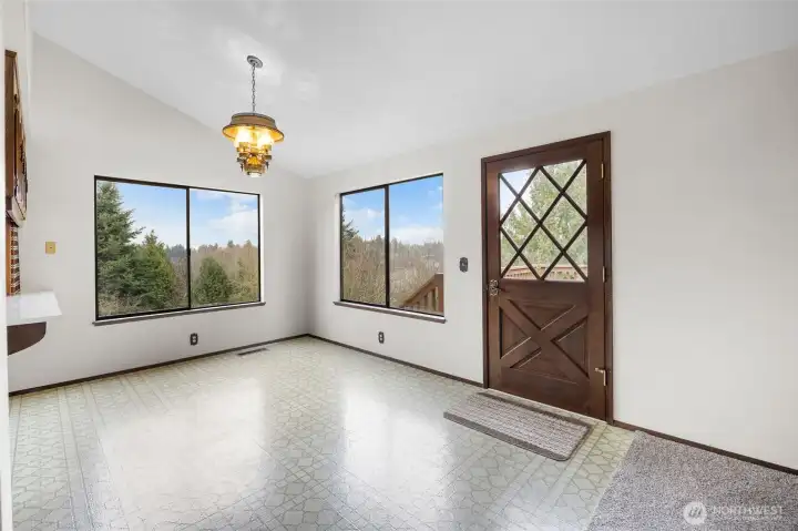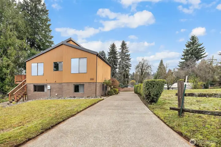 Tumwater Hill one owner home, 1st time on the market since built in 1972! Brick/cedar clad exterior w/ standing seam metal roof. Super neat split level w/ fresh interior paint retains some cool retro charm. As you enter please note the exposed aggregate floor. Upstairs, find a large, country style kitchen w/ eating bar, pantry, guest bath and access to the deck. Kick back in the large living room w/ vaulted ceiling & fireplace. The home is perched to take advantage of the Capitol, mountain and lake/sound views. The primary bedroom, 3/4 bath, big closet finish off the main floor. Downstairs find a large utility area w/ built in cabinetry, rec room w/ fireplace, 2 addt'l bedrooms and a full bth. Large attached garage and small detached shop.