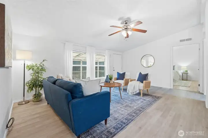 Enjoy the simple life in the Burlington Hill Estates Mobile Park. This 2003 built mobile home is 1,512 square feet with 3 bedrooms 2 bath. Walk into an open floor plan with laminate flooring for easy maintenance. Two living spaces to enjoy company in. Large kitchen with plenty of counter-space plus a dining area. Spacious primary suite with walk in closet and attached bath. Two car garage attached for easy access to home. Greenhouse can be used for extension of living space or to grow vegetables & plants. Private yard with no neighbor in the back!