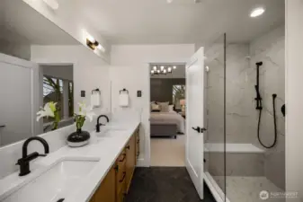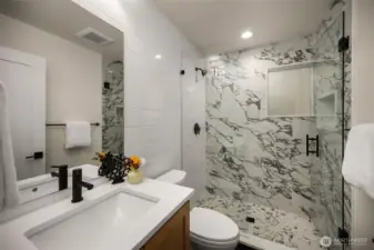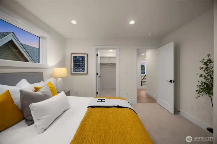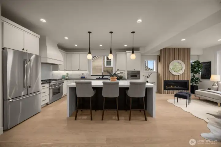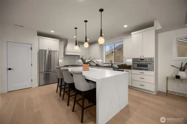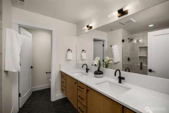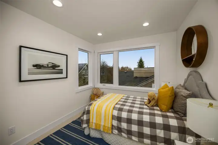 Introducing Copper Queen, a striking new home on the west slope of Queen Anne. This thoughtfully designed 3-level layout features an open main floor with a spacious living room, dining area, designer kitchen, walk-in pantry, and covered deck. The upper level offers a luxurious primary suite with spa-like bath and WIC, plus three additional bedrooms, full bath, and laundry. The lower level includes a private bedroom, full bath, wet bar, washer/dryer hook-ups, and a large flex room which is ideal for guests or a media room. Enjoy a generous EV-ready 1 car garage, mud room, and covered storage. Fully fenced yard. Exceptional craftsmanship & modern finishes throughout. Great location close to parks, transit, shops, and top Queen Anne amenities.