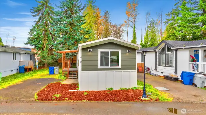 Prepare to be wowed by this fully remodeled 2 bed, 1.75 bath manufactured home in the heart of Black Diamond. Every inch feels brand new, from the custom kitchen with quartz counters, gold-tone fixtures, and stainless steel appliances, to the spa-inspired primary bath featuring a soaking tub, double vanity, and walk-in shower. Light-filled rooms, modern flooring, and frosted glass closets add a luxury touch throughout. Tucked into a peaceful community near Ten Trails & historic downtown. This is not your average manufactured home.... it's a showstopper.