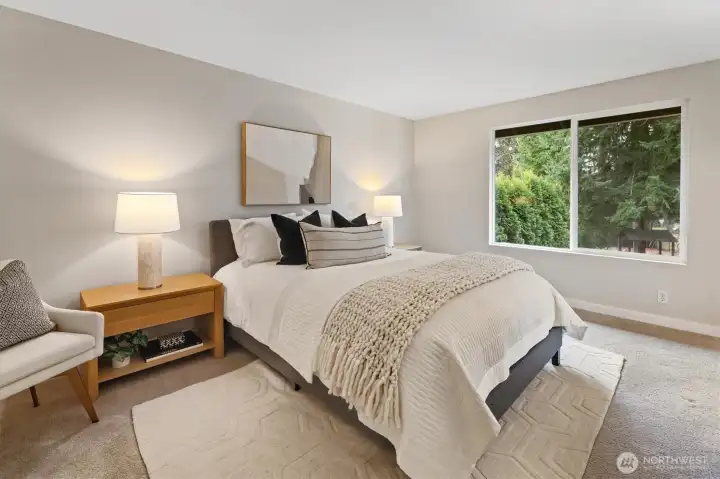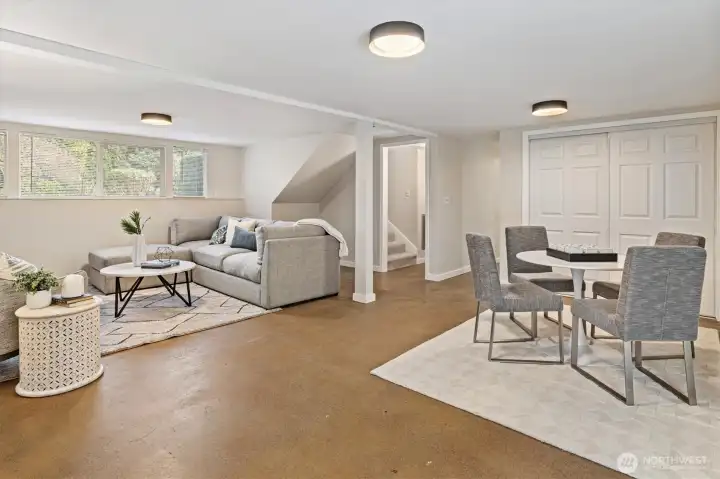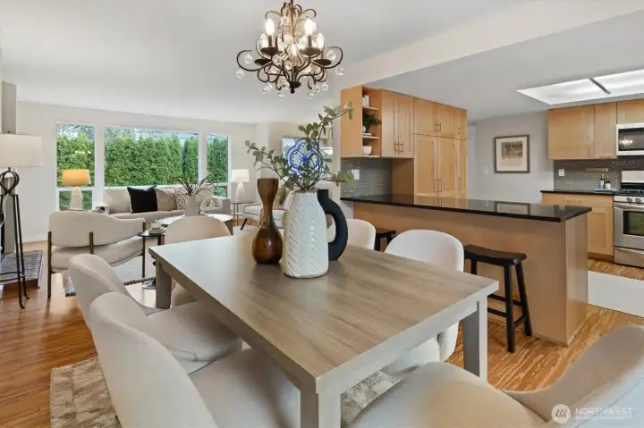 Meticulously remodeled 4 BR 3 BTH home combining modern elegance with unmatched comfort. Large, open kitchen is a chef's dream, featuring stainless steel appliances. The kitchen flows seamlessly into the formal dining room, creating an inviting space for gatherings. The main level hosts 3 well-appointed bedrooms, including a lavish primary suite that is complete with a luxurious 3/4 bath & spacious walk-in closet. Daylight lower level reveals a captivating rec-room, boasting polished concrete floors & gas fireplace—a perfect setting for relaxation & entertainment. Central AC, ensuring comfort throughout the seasons. Huge level lot, embraced by a fenced backyard & Trex deck. 2 car garage. Only minutes to downtown Kirkland. #1 school cluster!