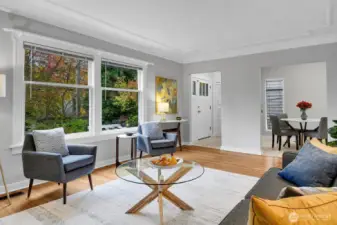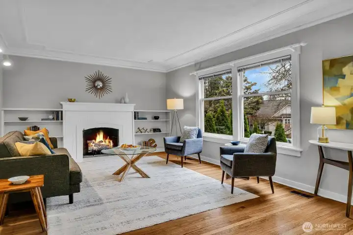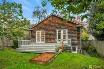 Charming & spacious Craftsman home close to UW. LR1 zoning. Great floorpan with high ceilings & rare 3 big bedrooms on the main floor. Refinished hardwoods, double pane windows, stainless steel appliances, built ins & more. French doors off 2 bedrooms & generous closet space in all 3. Sweet patio area surrounded by garden space for an Eastern perch & a big back yard with full length West facing deck perfect for entertaining. Well cared for with many systems updated including sewer line, recent gas furnace, most wiring, & chimney tuck pointing. Large open dry basement with good ceiling height for possible 2nd unit. Detached garage. Close to Trader Joes, coffee shops, UW, bus lines & easy I-5 access. Nice to live in now with potential upside.