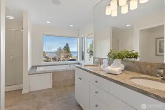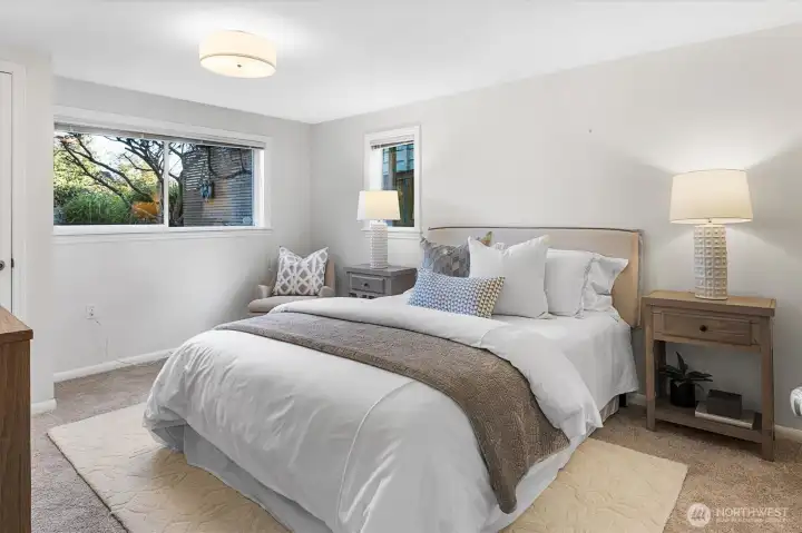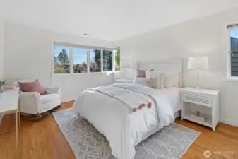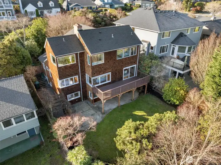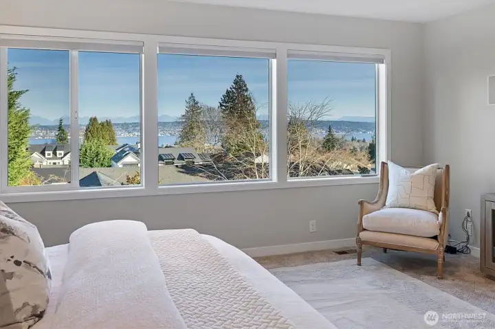 Panoramic vista of Lake Washington and Mt. Rainier, offering a serene backdrop that elevates everyday living into an experience of sublime tranquility. Spanning a generous layout, this home features 5 spacious bedrooms and 3 well-appointed baths, making it an ideal sanctuary for those who cherish space. The primary suite serves as a retreat offering a lavish bath that promises relaxation & privacy. Wonderful updated kitchen where elegance meets functionality with quartz countertops and a chic subway tile backsplash! This home is as versatile as it is beautiful, featuring a daylight lower level that presents endless possibilities. Whether you envision it as an ADU or an extension of your living space, this area is ready to adapt to your lifestyle needs. Spacious level fenced backyard. Updates include 2012 addition top floor, all new wiring throughout, all new PEX plumbing, central AC added in 2018, Cat-5 connections in each room. Located in sought after View Ridge only minutes to Children’s, UW, 520, downtown & Amazon, & in Seattle’s #1 most sought after school cluster and proximity to parks and recreational activities, making it a perfect setting for both adventure and relaxation. You will love this home, view and location! Yes, you can have it all!