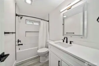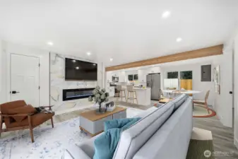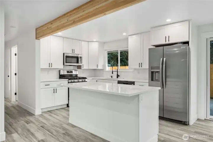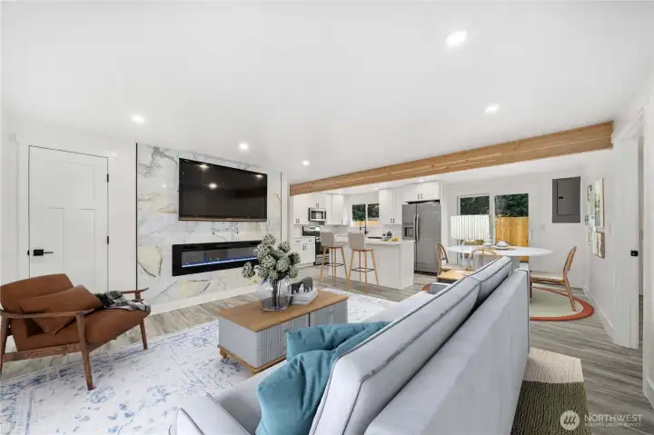 Exquisitely reimagined 3-bedroom, 1.75-bath rambler in Burien’s coveted Normandy Park with rare private access to The Cove—18 acres of Puget Sound beachfront, clubhouse, tennis courts, wooded trails, creeks and serene wetlands. Every detail of this 1,240 sq ft home has been thoughtfully gutted and rebuilt with upscale finishes including luxury LVP flooring, quartz countertops, GE stainless steel appliances, triple-pane windows, striking marble fireplace, tankless water heater and fresh white paint throughout for a light, bright, refined feel. Exterior upgrades include a new driveway, deck, fence, insulated garage with opener and updated landscaping. Truly turn-key luxury.