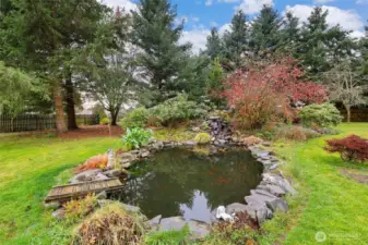Meticulously maintained rambler on 1.4 acres. A circular drive welcomes you to this home set among mature landscaping offering exceptional outdoor living. Enjoy a spacious back deck with hot tub overlooking a tranquil waterfall that flows into a gorgeous pond w/goldfish. The fully fenced lot provides privacy, room to play, and plenty of space for your outdoor activities. Inviting open-concept layout with 3 spacious bedrooms and 2 full baths. The peaceful primary suite includes a walk-in closet and full bath. Recent updates include roof, floors, lighting, and furnace complete with air conditioning. Room for parking RV, boats, etc. Located close to I-5, 20 minutes to Tumwater and minutes to Grand Mound.