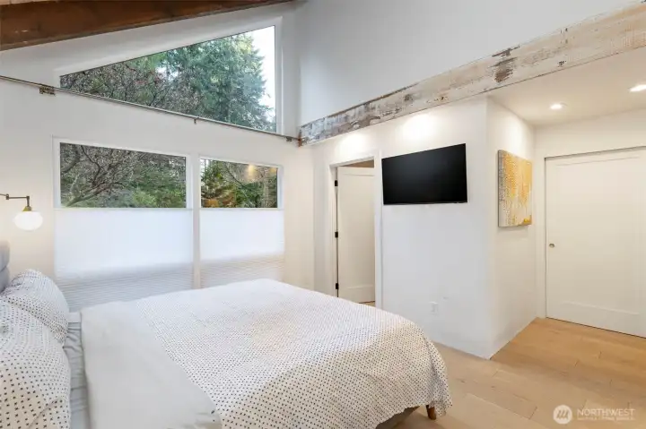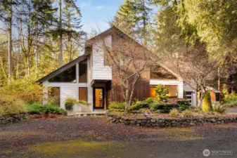 Serene Agate Point oasis—3,040 sq. ft. of beautifully refreshed living on 1.55 acres. This 4-bedroom 2.5 bath home feels both modern & rustic with wood planks & beams on the vaulted ceilings. Warm engineered hardwood flooring nearly throughout the home. Amazing natural light with picture windows surrounding the main floor. White cabinets, oversized 5-seat island, SS appliances, & quartz counters in the stunning kitchen. Primary suite & office on the main floor! Renovation in 2021 with just a few projects left to complete & customize! Attached 2-car garage. Quick drive to the Seattle ferry & Bainbridge Island's celebrated downtown dining, shopping, & coastal charm. The ideal blend of island tranquility and commuter convenience.