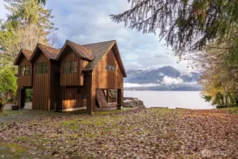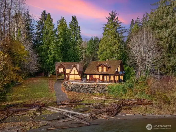Discover a rare year-round lakefront estate at 52 Lakeview Dr in Lake Quinault. Set on an acre with 144 ft of shoreline, this property includes TWO homes, a third residential space, and a detached garage. Together, the homes offer 5 beds and 3.25 baths, featuring an impressive 1,834 SQFT A-frame with soaring ceilings and warm wood accents, plus a 1,512 SQFT second home ideal for guests or extended living. The detached garage provides great storage, and the third residential space offers endless use options—studio, office, or guest quarters. A standout opportunity on the coveted north shore of Lake Quinault.