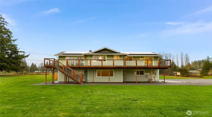 This stunning 2,800 sqft home has been beautifully remodeled to create a light-filled and airy atmosphere. Step into the inviting open-concept main level, featuring a spacious kitchen adorned with butcher block accent island and farmhouse sink, ideal for culinary adventures. Large picture windows frame breathtaking views of your nearly 5-acre oasis, perfect for relaxation and entertaining. The downstairs level has a half bath that's primed for conversion into a full bath, plus bonus rooms are ready to accommodate an additional kitchen for a potential ADU setup. Endless opportunity. Enjoy peace of mind with all-new appliances, mini splits, hot water heater, roof, windows, doors and energy-efficient solar panels. Your dream home awaits!