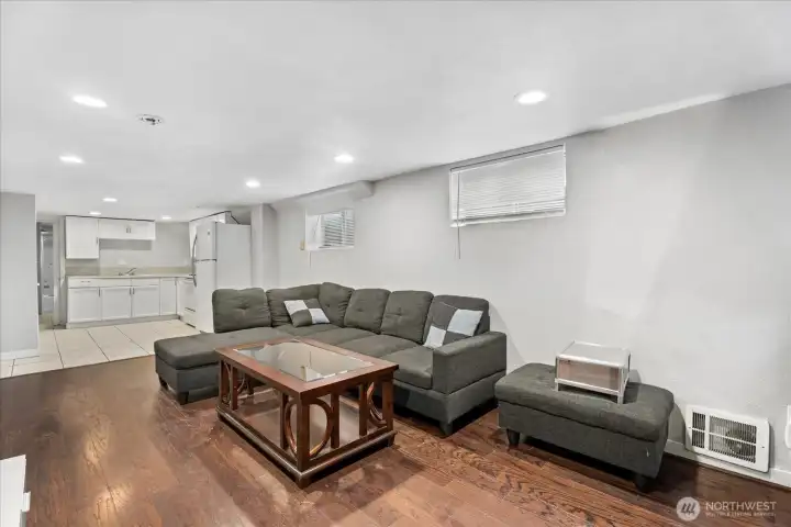 Step into this refreshed daylight rambler where space and flexibility shine. Upstairs offers 3 bright bedrooms and an open-concept living area with new flooring and modern finishes. Downstairs, 3 roomy bonus spaces are ready for an office, gym, media room, or guest suite. The updated kitchen sparkles with brand-new stainless steel appliances. Enjoy a large, fully fenced yard and a stylish new deck for easy entertaining. Plenty of storage plus potential to create an ADU or rental for added income. Just 14 minutes to downtown Seattle and about a mile to light rail—commute with ease.