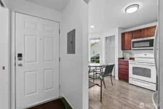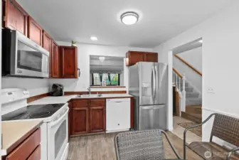 Step into this stunning end-unit, townhome-style condominium where comfort meets convenience at every turn. Flooded with natural light, this 3-bedroom home showcases beautifully updated bathrooms and modern vinyl plank flooring that elevates each room with style and durability. The inviting kitchen with eating space enhances daily living and entertaining. Step outside to your private, fully fenced backyard—a rare retreat ideal for gatherings, play, gardening, or peaceful evenings. A private single-car garage provides secure parking and valuable storage, completing this exceptional Kent offering.