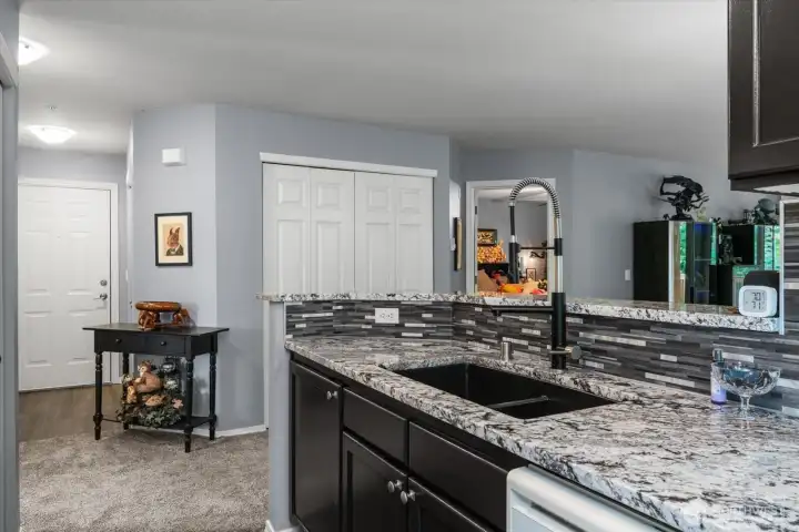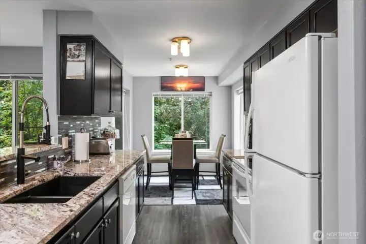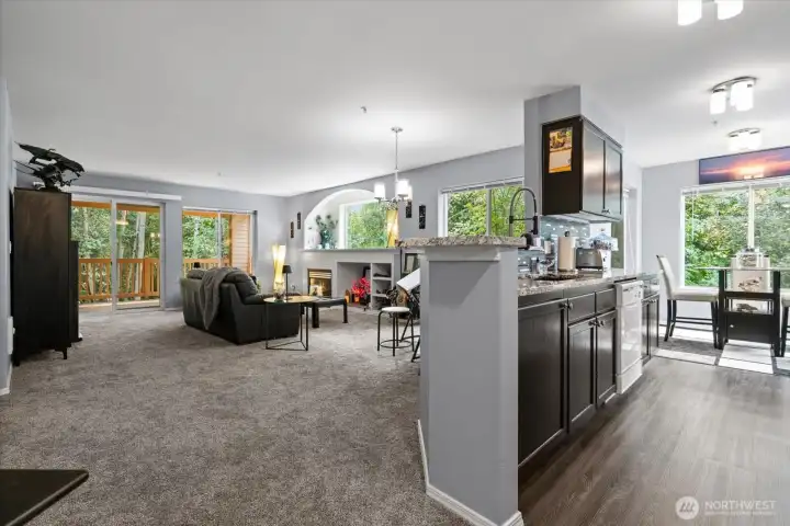 Surrounded by protected wetlands, embrace privacy and serenity in this 3 bed/2 bath 2nd floor corner unit in the Garden Grove community. Enjoy a private deck with direct access to the greenbelt and step inside to find modern updates throughout, including granite countertops, a granite kitchen sink, luxury vinyl flooring, fresh carpet, and a newer water heater. Soak in the forested views from the open-concept living and dining areas and unwind by the fireplace that warms the entire home with ease. The spacious primary suite boasts direct deck access and a step-in closet in the ensuite bath. Part of the coveted Mukilteo School District. You'll appreciate the easy access to I-5, Hwy 99, transit, restaurants, and shopping. Pre-inspected!