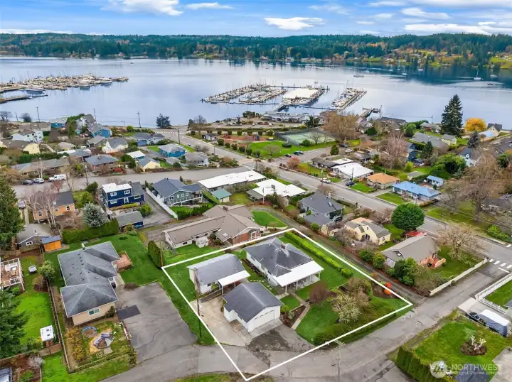 The perfect package...2 houses, water views, large sunny lot and walkable to town! Enjoy stunning Liberty Bay water and Olympic Mountain views from this original 1940’s charming 3 Bedroom/2 Bathroom home located in the heart of Poulsbo. The main home features two light-filled upper bedrooms and a private lower-level bedroom and den, complemented by an open living area that captures all day sunlight and sunsets. A large front deck looks out onto an oversized yard perfect for entertaining. 2nd house on property offers lots of potential; multigenerational living, guest space or rental income. Spacious 2-car garage provides lots of storage. Walkable to the waterfront, parks, downtown Poulsbo and local amenities. This property is beyond special!