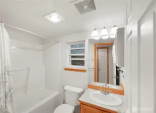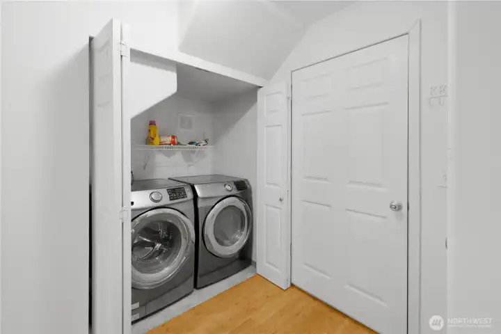 Beautiful Parkview Village home. Light filled corner home. Downstairs entry w/ sitting room. Bright & spacious main level featuring living room w/ gas fireplace, kitchen w/ SS, gas range & pantry, dining & bedroom w/ full bath. Upstairs master suite complete w/ walk-in closet & en-suite full bath. Add'l bedroom w/ extra closet space & full bath. 2 car garage w/ extra storage. Fully fenced back yard. Easy access to I-5, 405, 99, 525 & transit. Easy access to Ashway Park N Ride.