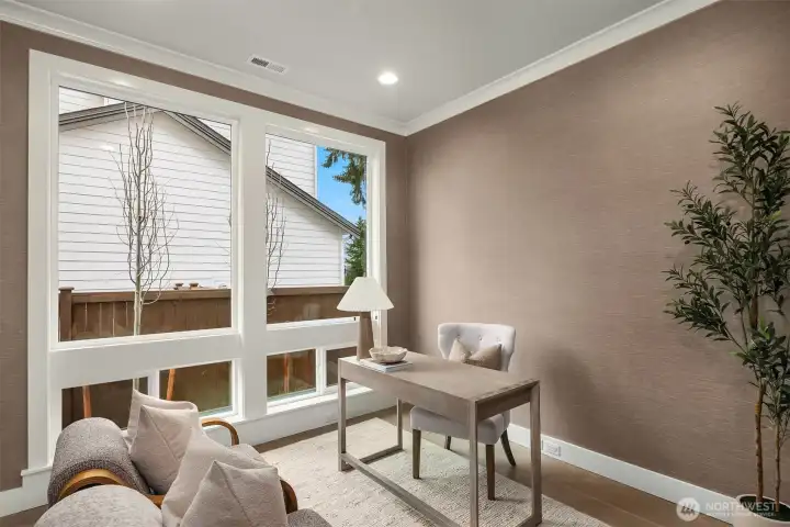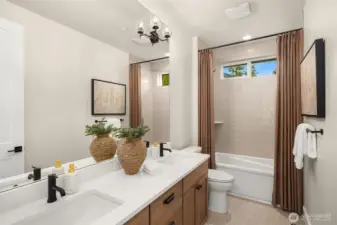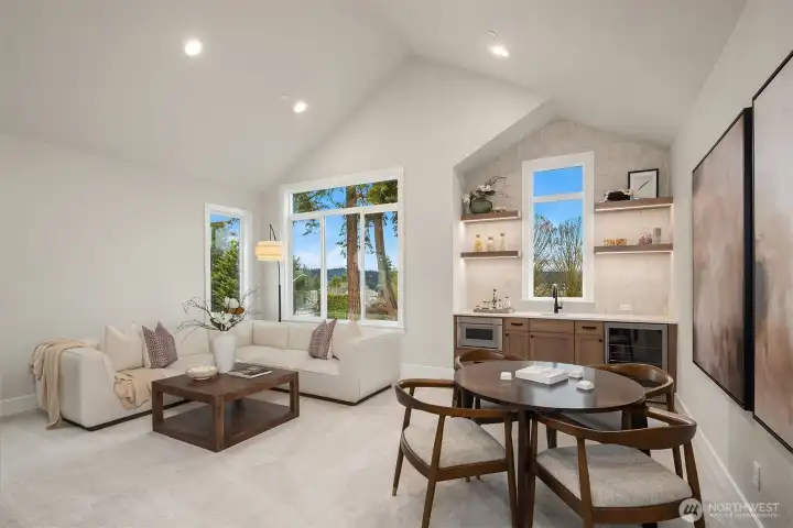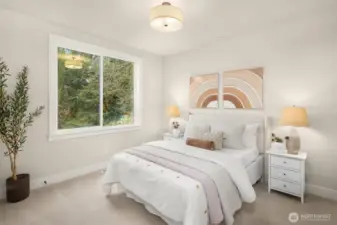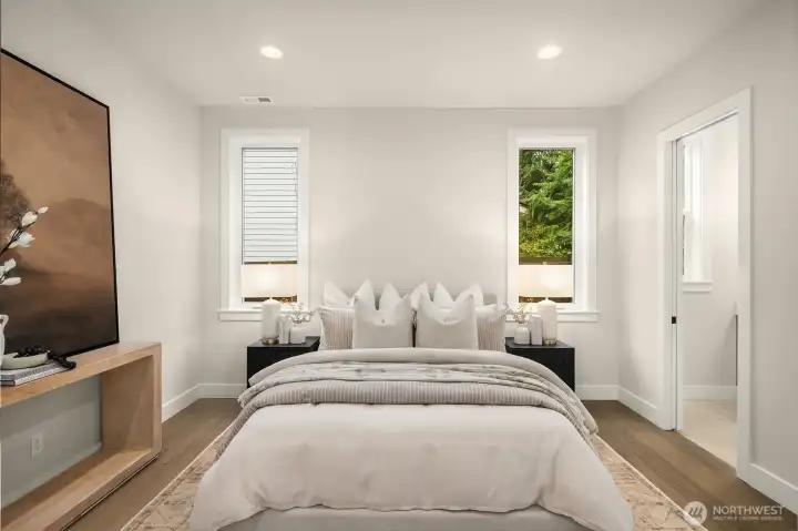 Murray Franklyn proudly introduces Jutta’s Garden & our stunning NEW Martinsville plan. This exceptional 5-bedroom, 4.5-bath home with a main-floor den blends comfort, flexibility, and modern elegance. Premium finishes include slab-quartz countertops in the kitchen and all baths, a Frigidaire full-size refrigerator and freezer, wide-plank engineered hardwoods, and stately 8-foot interior doors. The spa-inspired primary suite offers a mud-set shower and richly tiled flooring. Soaring windows fill the home with natural light, while the covered outdoor patio with fireplace creates a true indoor-outdoor retreat. All nestled in a beautiful new community with nearby parks and trails—just minutes to Redmond, Bellevue, and abundant local amenities.