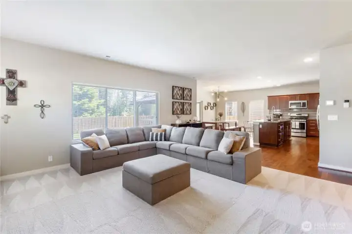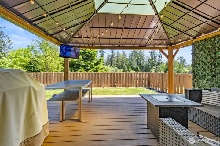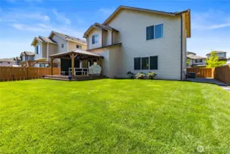 Beautiful 4 bedroom home in desirable Lakeland hills area with over 2500 sq ft. Open concept living with good size kitchen w/ large island, Granite counters and Stainless appliances. Great room with gas fireplace. Primary suite upstairs with 5 piece bath and large walk-in closet. 3 more beds and laundry upstairs. Step outside to expansive gazebo covered deck with Trex decking. Fully fenced back yard Backs up to a greenbelt and close to neighborhood park. Concrete walks on side yards for low maintenance. Central A/C and 2 car garage.