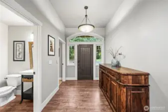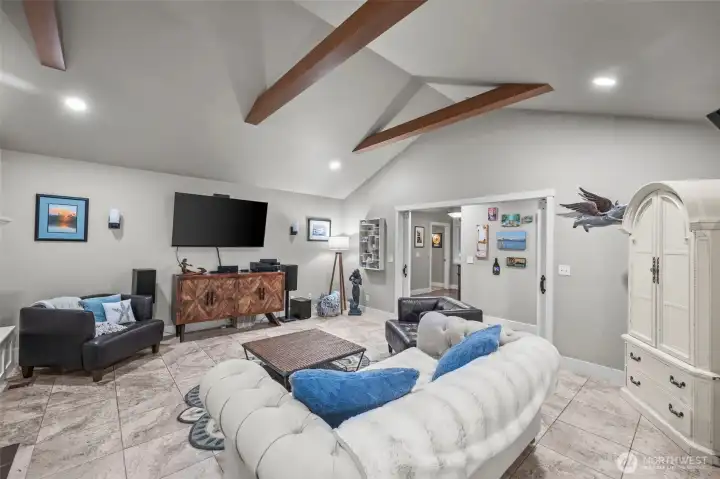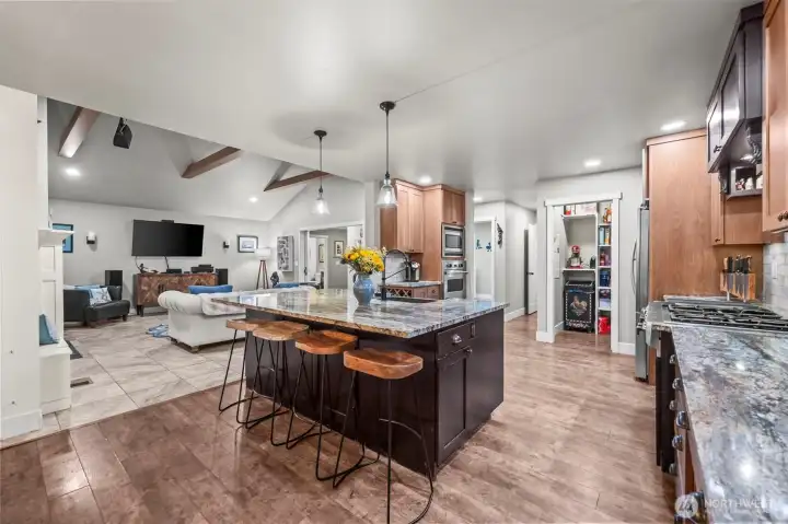 Situated on a 2.04 acre corner lot, this 1.5 level, 2008 custom home offers 4 bedrooms + office + upper level bonus room, 2 full & 2 half baths. The living room's vaulted ceilings, exposed beams, built-ins, and double-sided propane fireplace connect the living room and hand-stamped concrete back patio. The kitchen features high-end appliances, granite counters, large pantry, & custom cabinets/trim. The primary bedroom & en suite have heated ceramic tile floors. Engineered hardwood floors, oversized laundry & ample storage enhance functionality. Exterior highlights include upgraded well filtration system, French drains & fully fenced yard. Located on a quiet dead-end street w/ peace & quiet while still being close to bigger city amenities.