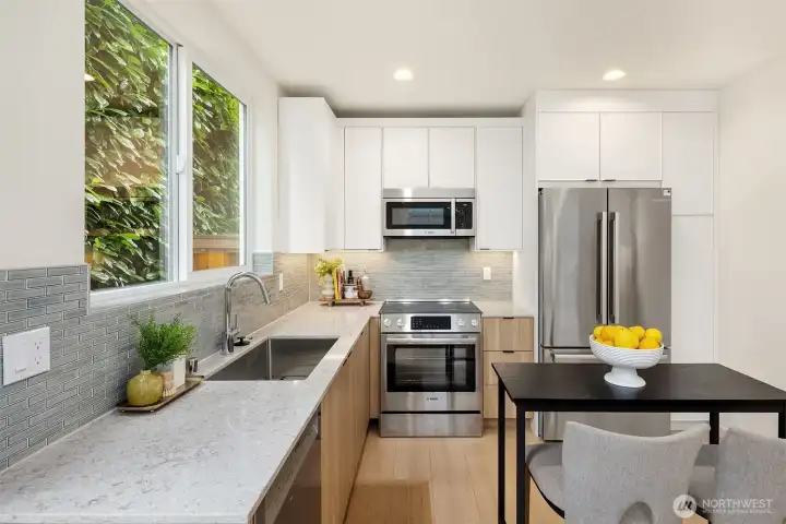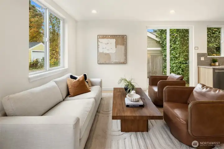 Welcome to this charming Craftsman cottage in the heart of Maple Leaf. Open concept main floor is your entertaining hub. Well-appointed kitchen with sliders to patio & fenced yard, perfect for BBQ or pets. Upstairs, find your primary suite with WIC, plus two additional spacious bedrooms and full bath, creating maximum flexibility for home office or guests. Mini-splits allow zoned energy-efficient comfort throughout the seasons. Private alley access and attached EV-ready garage complete this home. Blocks to Maple Leaf Reservoir Park, new Woven Yoga & great dining options with The Maple, Macrina, Cloud City Coffee & much more. Plus, easy access to I-5 & transit for quick travel around the Sound.