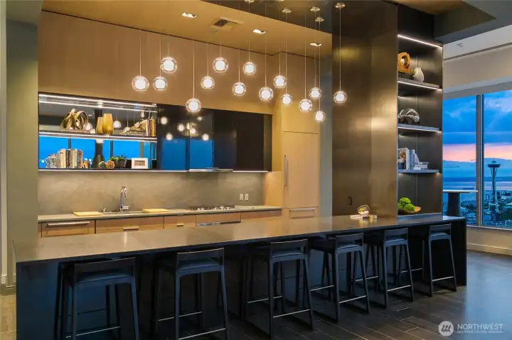 PH203 at The Nexus is a rare 3,000-sq-ft penthouse that captures sweeping panoramic views. Completed in 2020, this 3-bed, 3-bath residence blends modern luxury with floor-to-ceiling windows, refined finishes, and expansive open living spaces. Primary suite with walk-in closet, and full guest suite. The Nexus enhances everyday living with concierge service, a fitness center, dog lounge, media lounge, and the impressive 41st-floor Sky Club featuring an exhibition kitchen, private dining, lounge, and terrace. Includes 6 parking spaces and 2 storage units. Ideally located in downtown Seattle, PH203 is perfectly suited for those seeking sophistication, convenience, and elevated urban living.