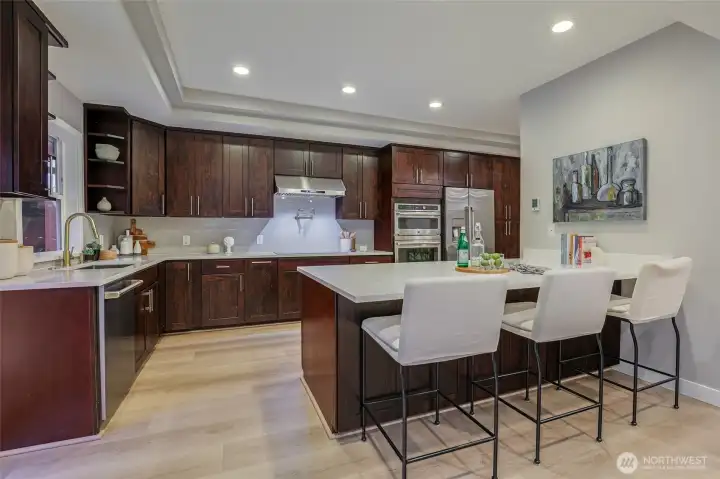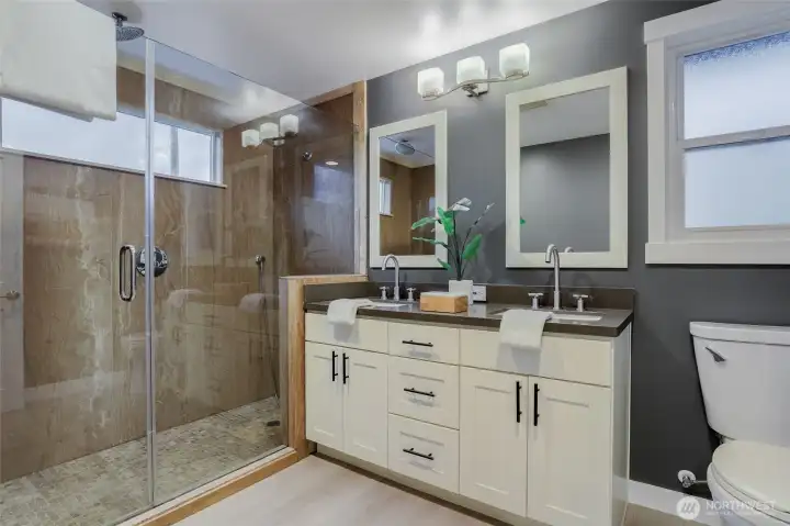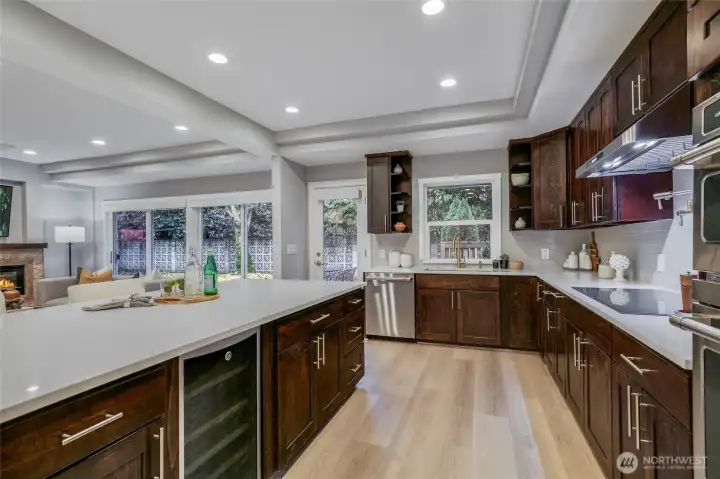 The perfect blend of class, character and function in this beautiful NW Contemporary. Completely renovated in 2015, and still feels new. A warm & welcoming floorplan oozing comfort & style. Eye-popping kitchen boasts quartz counters, abundant cabinets, induction range, W/I pantry and a rare pot-filler! Seamless flow into a large living room. Primary suite features a luxurious bathroom, generous W/I closet and access to back patio. Light-drenched family room showcases box beam ceilings and a second fireplace. Versatile adjacent area w/wet bar. Wine cellar, w/second wet bar, doubles as an office. Fenced backyard offers a huge patio and optimal privacy. Ample offsteet parking. Minutes to Children's, UW, U-Vill, Mag Park and Burke-Gilman Trail.