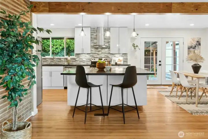 Experience timeless one-level living with thoughtful updates throughout. Enjoy beautifully refreshed landscaping, hardwood floors, and an updated kitchen featuring a stunning tile backsplash, ample prep space, and generous storage. The inviting living area showcases charming wood beams, while French doors off the kitchen open to a covered patio—perfect for year-round enjoyment. Outdoor perks include RV parking, space for a garden, and a versatile Tuff Shed ideal for storage, a home office, or flex space. Updated bathrooms complete this well-maintained and move-in ready home. Seller procured inspection report for your peace of mind.